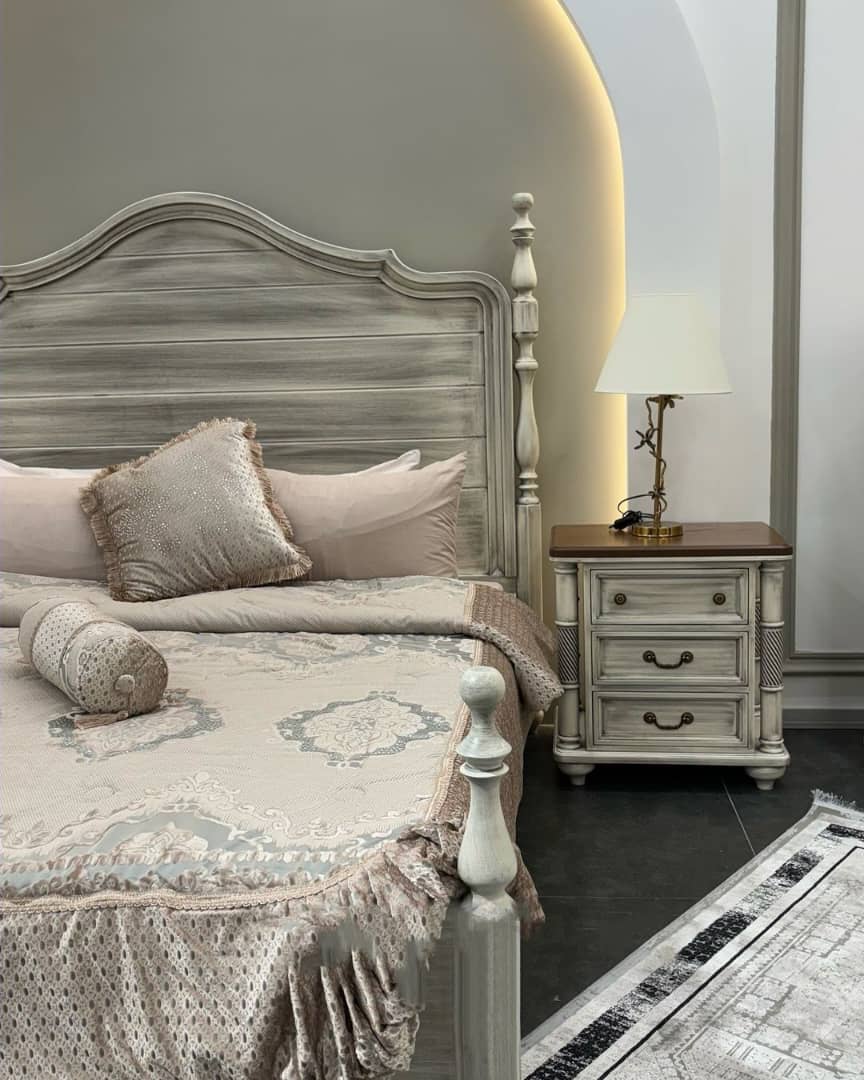 - سرویس خواب چوب دو نفره ماهان تمام با میز آرایش و پاتختی همرنگی انتخاب شما