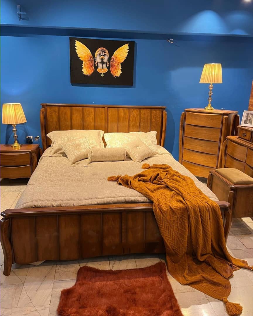 سرویس خواب **مانی** ترکیبِ زیبایی، دوام و چوبِ اصیل… ✨ تمامی ستونها و پایهها از **چوب نرات درجهیک** سطوح کار با **روکش چوب راش**، کاملاً صاف و چشمنواز 😍