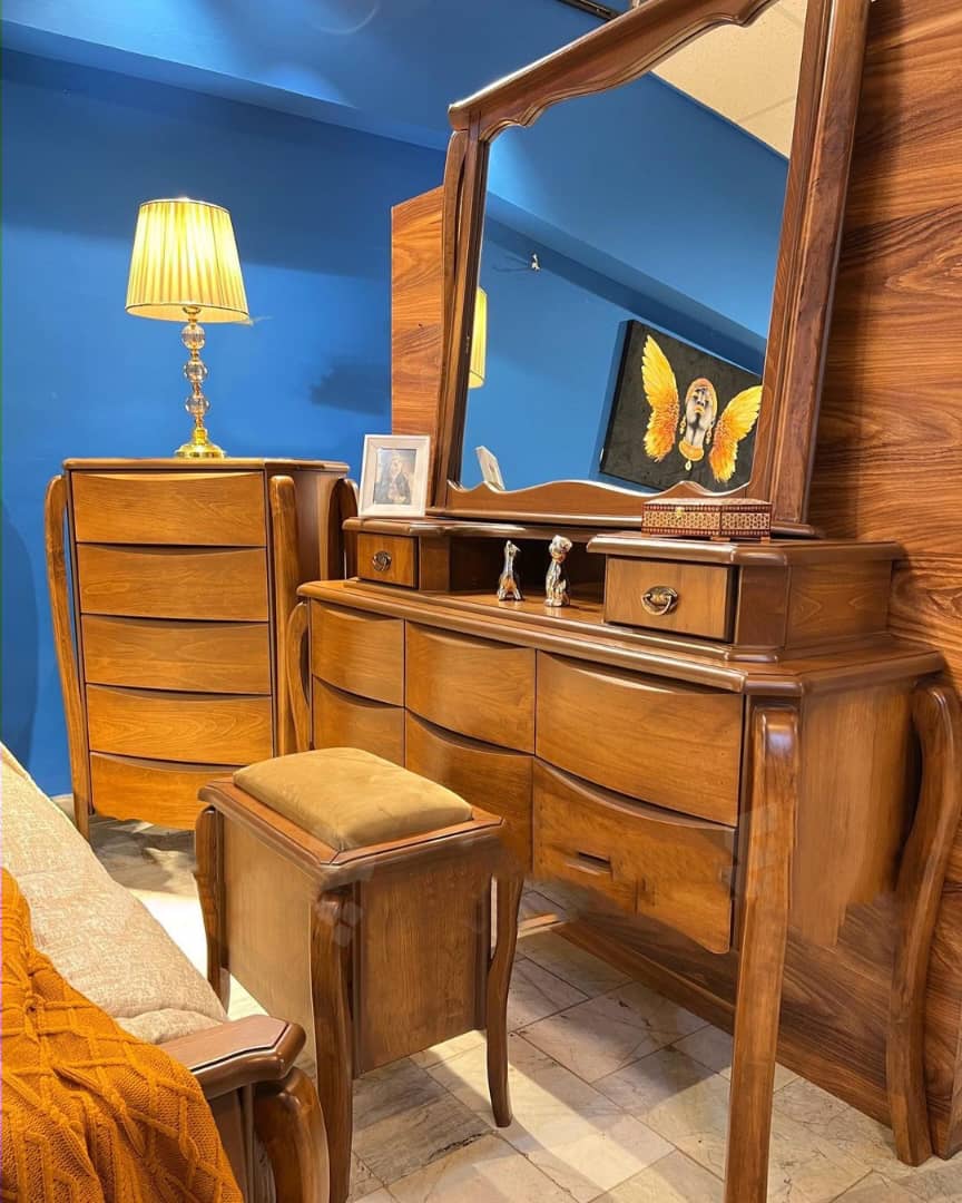 تخت ۱۶۰ یا ۱۸۰ میز آرایش آینه صندلی فایل ۵ کشو پاتختی
