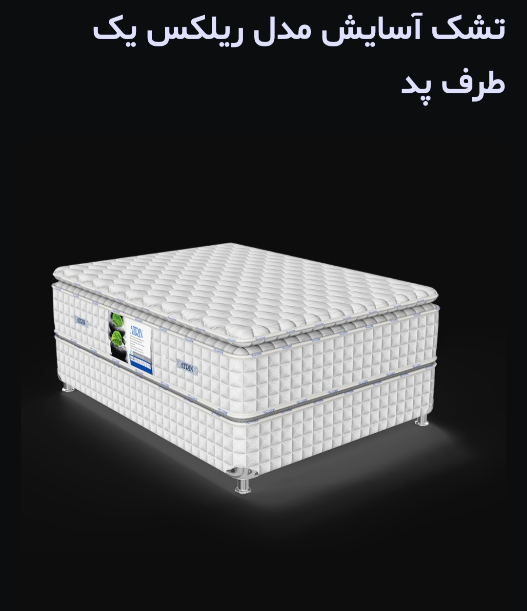 پد لاتکس یک طرف تشک به قطر ۴سانت با دانسيته ۴۰ کیلوگرم جهت پوشش ۷ ناحیه بدن مخصوصا گودی کمر و بالا بردن عمر تشک و جلوگیری از گرفتگی عضلات